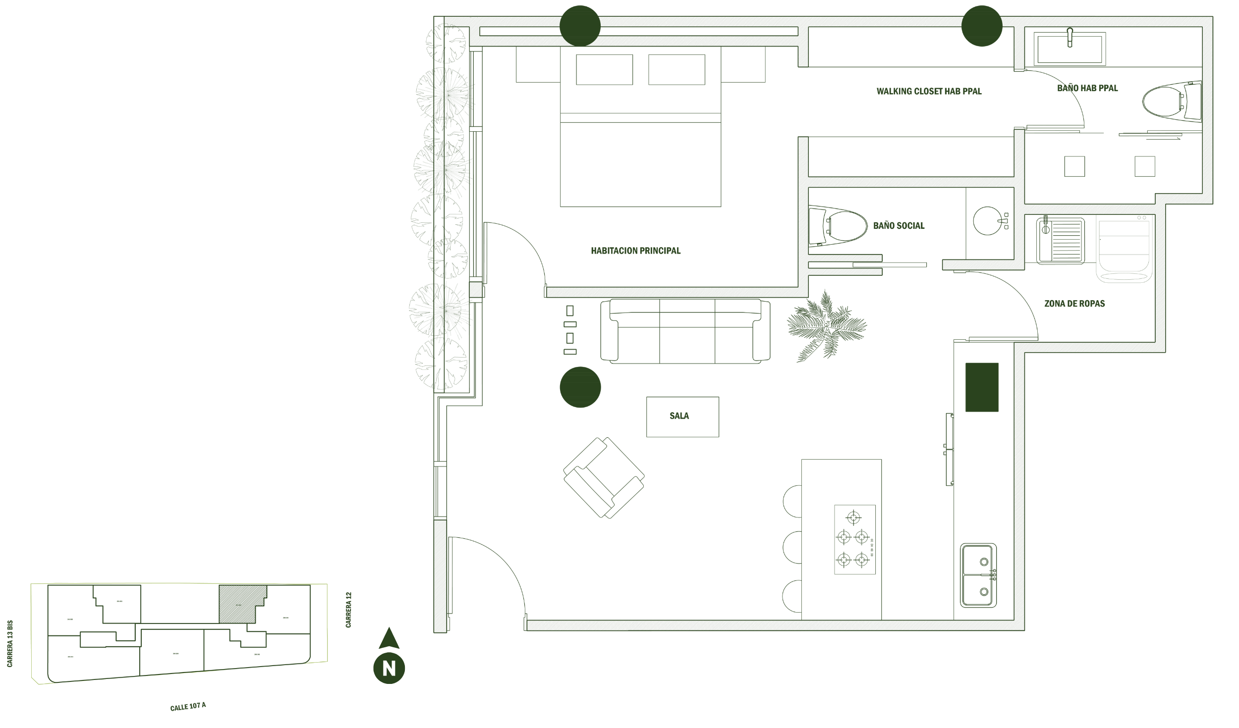 Los detalles, color y especificaciones de materiales, están sujetos a modificaciones y ajustes durante el proceso de construcción. Los muebles no están incluidos *